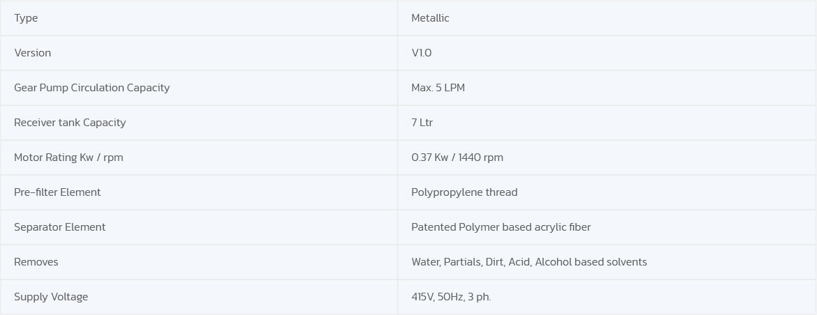 Separator Element – This is a special patented element. Since it does not absorb any liquid, its separation capacity always remains intact. There is no fixed service life for this element, and the replacement frequency generally varies from 1 year to 2 years.
