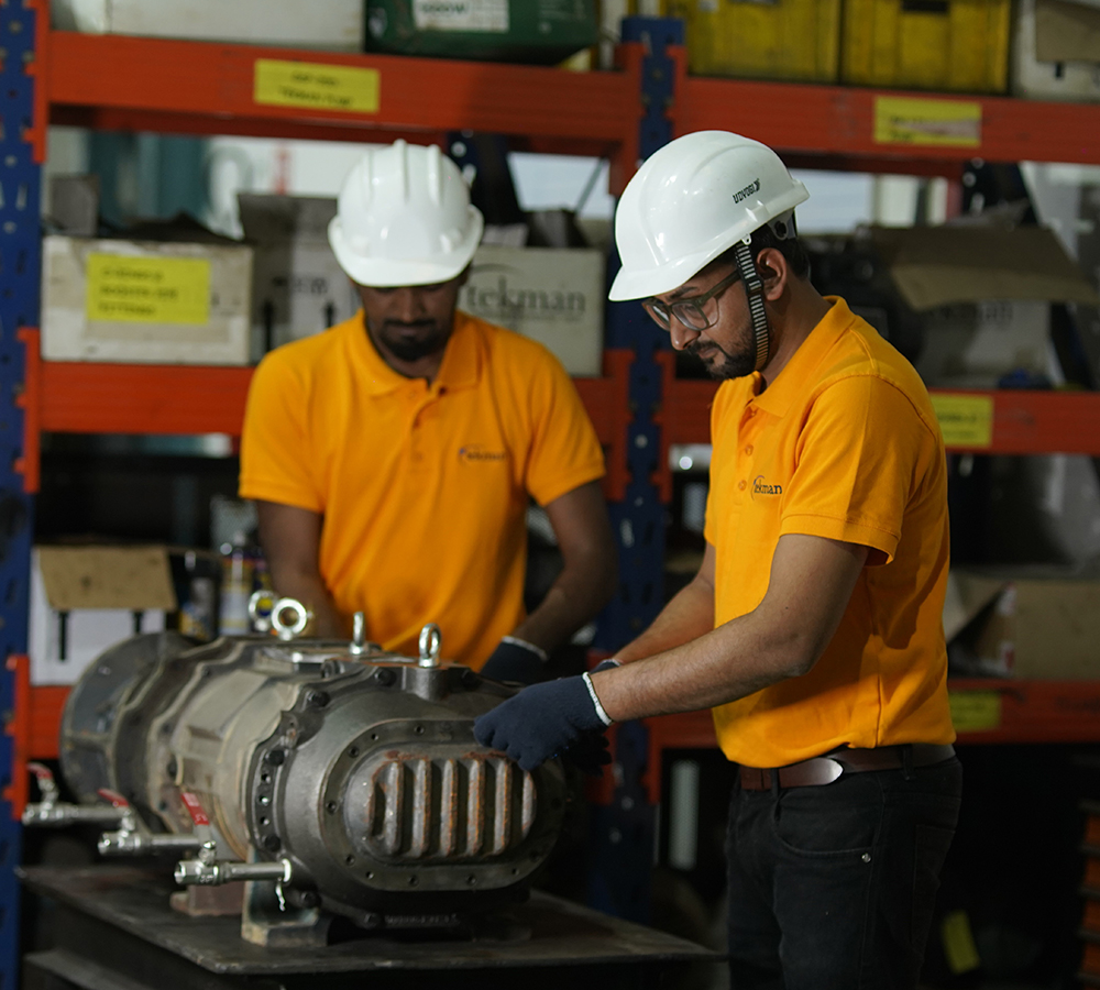 Yes. Tekman offers both preventive maintenance services and Annual Maintenance Contracts (AMCs) for vacuum pumps and pumping systems. These services include scheduled inspections, performance checks, and timely servicing to identify potential issues early, enhance reliability, and reduce the risk of unexpected breakdowns. Maintenance can be carried out onsite or at our service facility, with AMCs also providing priority support and predictable maintenance costs for uninterrupted operations.