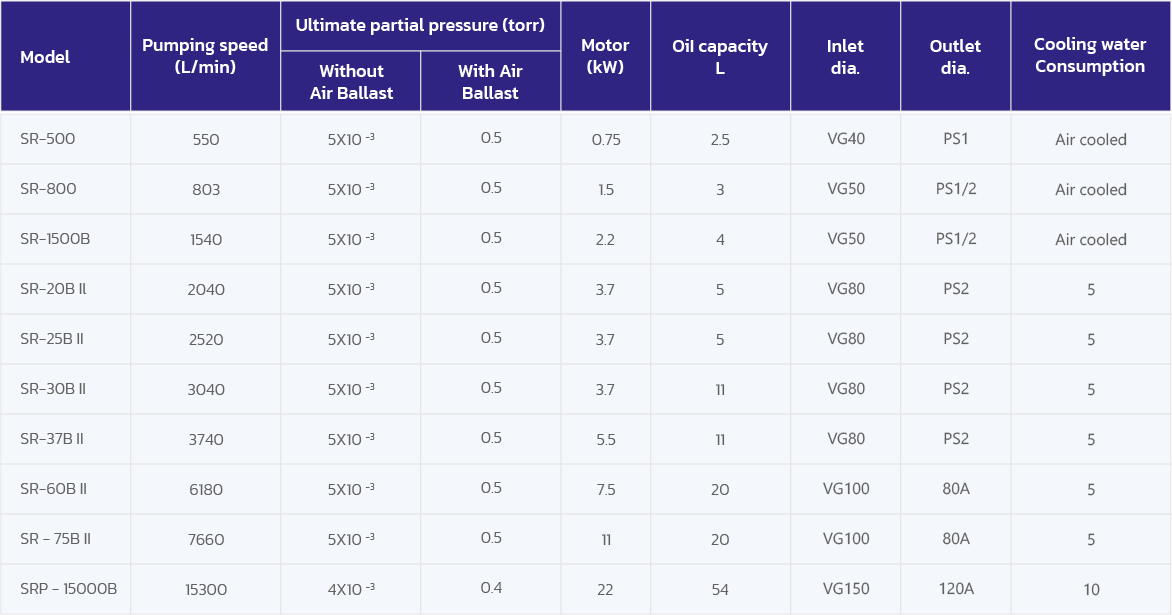 The pumping speed ranges from 30 m³/hr to 900 m³/hr & Ultimate vacuum of 0.005 torr making it suitable for various industrial processes.